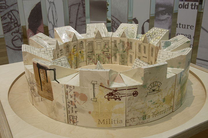 Practical clay workshops running from September 2000 to April 2001 explored the refugees’ experiences of conflict, displacement and relocation through the production of figuratively decorated ceramic tiles and ‘pages’. The results were both cathartic for the makers and poignant for the viewer.