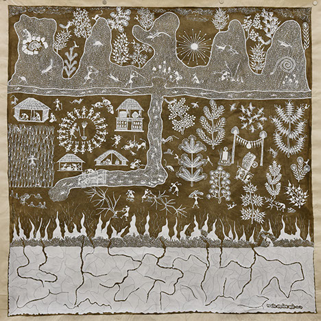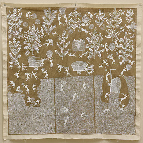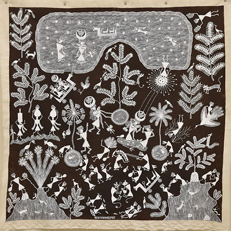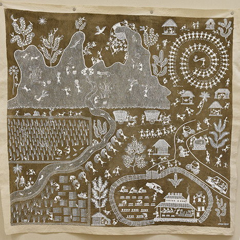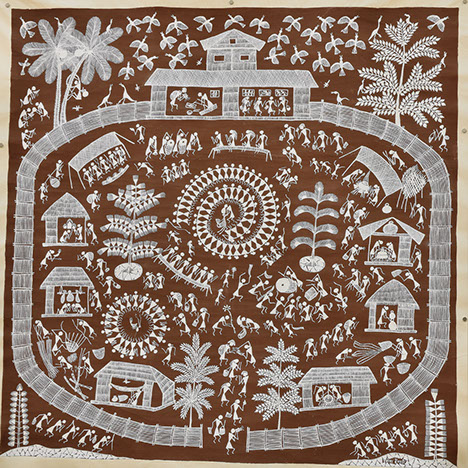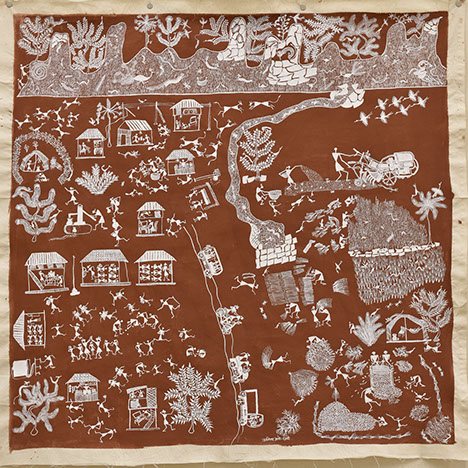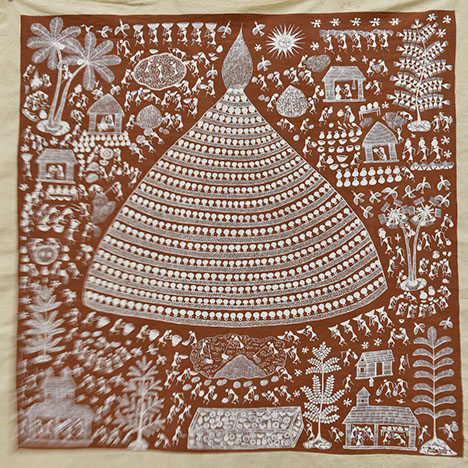 Artist Ramesh Hengadi and a team of Warli painters, brick-makers