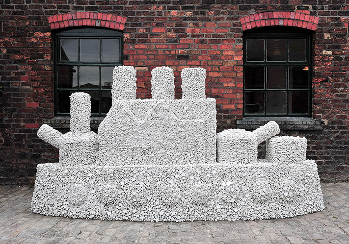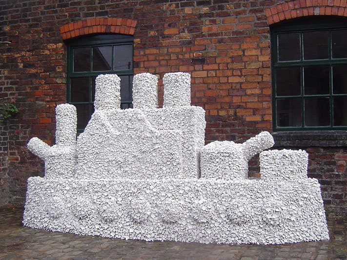 Monopoly was made from 30,000 industrially produced ceramic flowers, and was installed in the courtyard of Gladstone Pottery Museum during the British Ceramics Biennial, 2009. Based on the battleship token from the board game ‘Monopoly’, the sculpture explores the irony of the game’s origins in ‘The Landlord’s Game’ (developed by the American social activist Elizabeth Magie in 1904 as a tool to ‘demonstrate the evils of land monopolism’) in comparison to ‘Monopoly’s contemporary celebration of capitalist economic values.